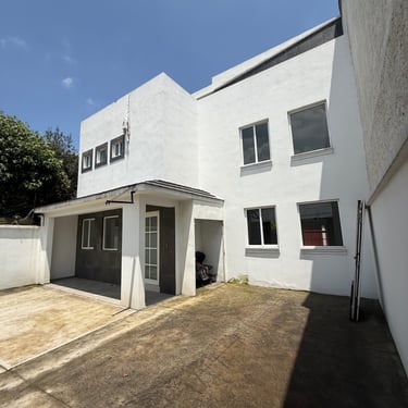Primer piso: Sala de espera con medio baño, sala principal, comedor, cocina abierta. Amplio patio trasero con área de bar y dos medio baños.